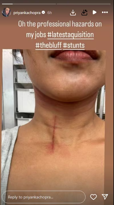 It is understood that it is a film full of action. The actress got bloody while performing such a scene. With a picture of a cut on her throat, Priyanka wrote, “Professional disability.” She actually got hurt while doing a stunt. But for now, the actress is healthy. Currently, the shooting of ‘The Bluff’ is going on. The film will be released on Amazon Prime Video.